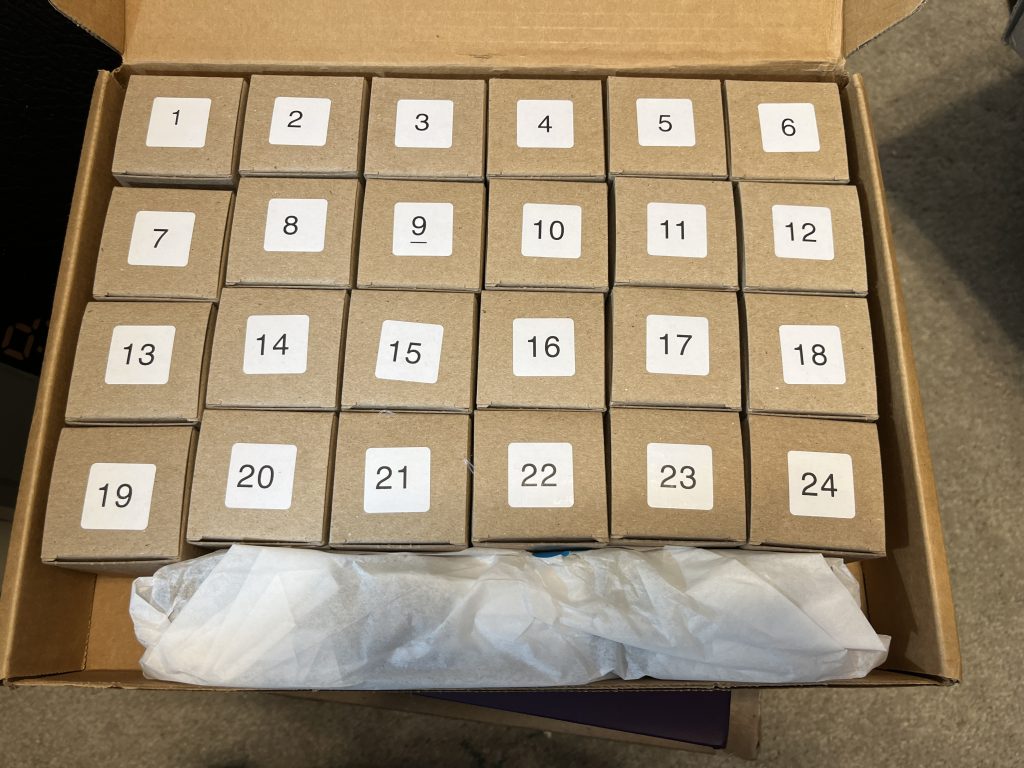 Here’s how the Advent arrived. There is a list of the colors included on the inside of the lid, which is a nice touch.