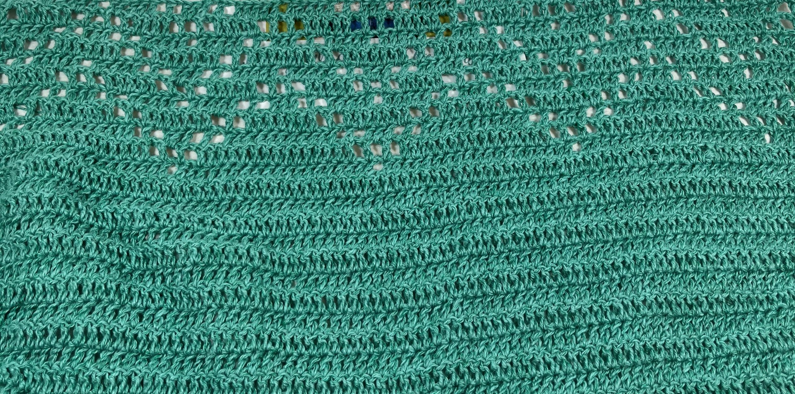 I completed most of the first panel of the Cordelia Tee before it was relegated to the WIP pile at some point in early Fall of 2024. Most of the pattern is pretty repetitive until you reach the filet sections, and that’s where I was when I put this down.